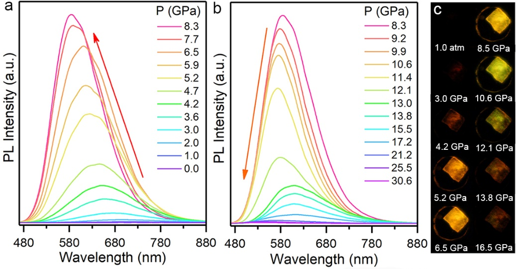 PEA4AgBiBr8的高压荧光光谱和图像