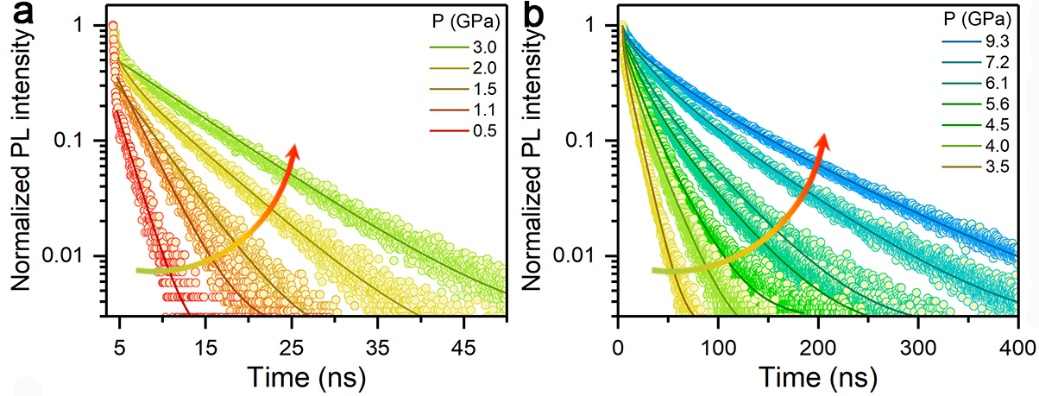 近日,吉林大学的邹勃教授、王凯教授,鼎新学者张龙博士,北京大学的蒋鸿研究员和大连化学物理研究所的隋来志博士合作,以二维层状材料PEA4AgBiBr8 (PEA+ = C6H5CH2CH2NH3+)作为模型体系,从载流子动力学和局域晶格畸变的激发态行为的角度揭示了压力诱导发射的基本物理化学机制。
