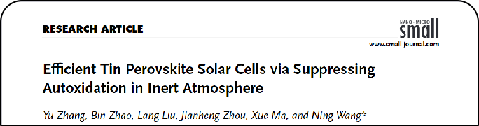 近日,国际知名学术期刊《Small》刊发了suncitygroup太阳集团凝聚态物理系王宁教授在锡基钙钛矿太阳能电池领域的研究论文:“Efficient Tin Perovskite Solar Cells via Suppressing Autoxidation in Inert Atmosphere”(DOI:10.1038/ smll.202306115)。