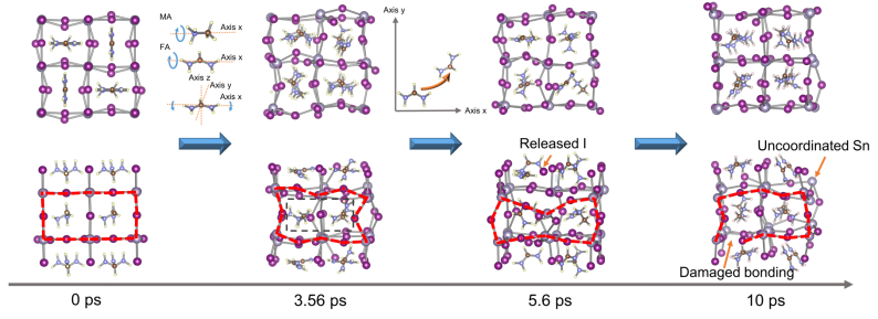 图3. DFT计算的锡基钙钛矿在光子注入条件下的晶格演变
