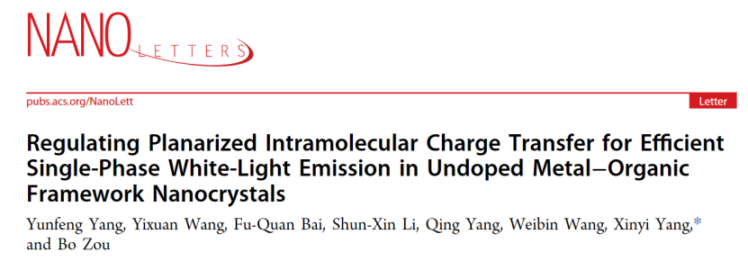 Nano Lett.| 杨新一教授利用压强工程实现非掺杂MOFs的高效白光发射