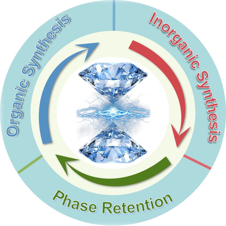 到目前为止,已经实现了高压下有机化合物从小分子到更复杂的有机化合物的合成和分析。同时,大量的无机化合物,包括但不限于氢化物、硼化物、碳化物、氮化物、硫族化物、卤化物和合金,也已通过大腔体压机和金刚石对顶砧等压力产生装置,实现超硬材料、超导材料、热电材料、含能材料和光电材料等的可控制备。此外,常压截获具有更高效发光性能的高压相,是继2018年压强诱导发光(Pressure-Induced Emission, PIE)概念提出后新的里程碑。