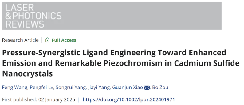 近日,suncitygroup太阳集团超硬材料国家重点实验室的肖冠军教授等人在CdS纳米晶体的发光调控研究中取得了重要进展。通过压力协同配体工程,成功实现了CdS纳米晶体在不同压力条件下的发光颜色转变,为半导体材料的光致发光性能提升提供了新的策略。相关研究成果以“Pressure-Synergistic Ligand Engineering Toward Enhanced Emission and Remarkable Piezochromism in Cadmium Sulfide Nanocrystals”为题发表在《Laser & Photonics Reviews》上。
