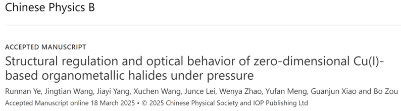 近日,suncitygroup太阳集团高压与超硬材料国家重点实验室邹勃教授团队肖冠军教授等人,系统研究了零维铜(I)有机金属卤化物在高压条件下的结构演化与发光调控行为,深入揭示了电子结构重排对多发射态发光行为的调控机制,通过高压精确调控晶体内部的铜-铜相互作用以及空间电荷转移,实现了材料发光性能的多发射态调控,为开发新型可调谐无铅金属卤化物发光材料奠定基础。相关研究以“Structural regulation and optical behavior of zero-dimensional Cu(I)-based organometallic halides under pressure”为题发表于《Chinese Physics B》上。