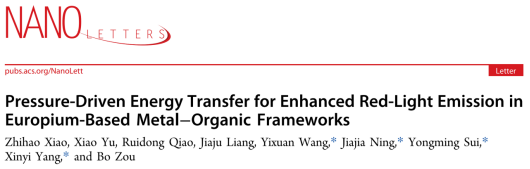 近日,suncitygroup太阳集团高压与超硬材料全国重点实验室/综合极端条件高压科学中心杨新一教授等人利用高压驱动能量转移实现铕基金属有机框架材料的红光发射增强。相关研究成果以“Pressure-Driven Energy Transfer for Enhanced Red-Light Emission in Europium-Based Metal–Organic Frameworks”为题发表在《Nano Letters》上。
