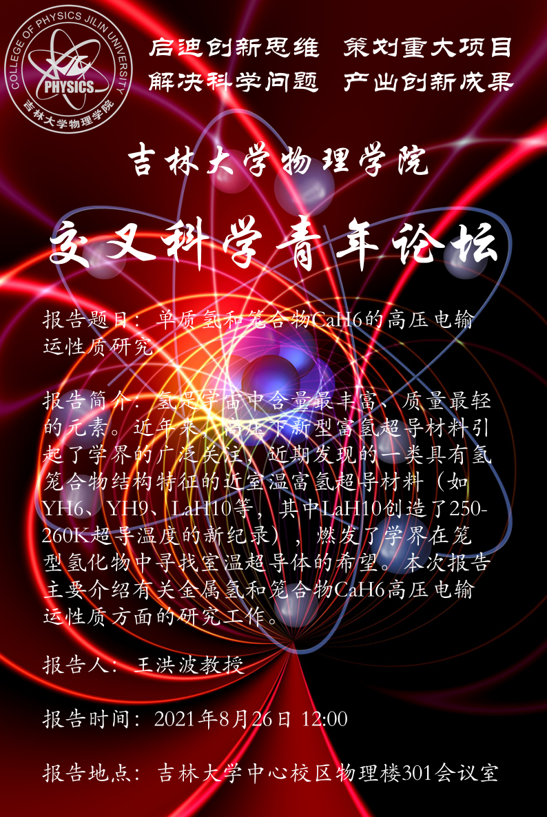 报告地点:吉林大学中心校区物理楼301