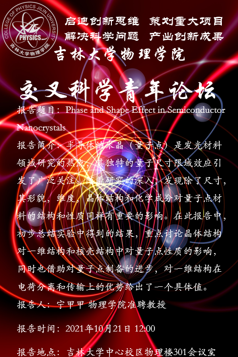 报告题目: Phase and Shape Effect in Semiconductor Nanocrystals