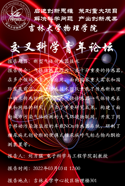 刘方猛,吉林大学电子科学与工程学院副教授,博士生导师,吉林大学“唐敖庆学者”青年学者。2018年入选中国科协青年人才托举工程计划和吉林大学励新优秀青年教师培养计划(重点阶段),2019年入选吉林大学“培英工程计划”和吉林大学优青培育计划,2021年入选吉林大学杰青培育计划。2021年获得国家基金委优秀青年科学基金。近年来,以第一作者和通讯作者在Sens.Actuators B、Adv. Funct. Mater.、ACSSensors、Nano-Micro Lett.等重要学术期刊上发表中科院1区论文46篇,授权国家发明专利36项。承担国家自然科学基金委、军委科技委和企业横向项目等。获得中国仪器仪表学会青年科技人才奖、中国电子学会/中国仪器仪表学会/吉林省优秀博士学位论文、电子信息前沿青年学者出版工程、宝钢优秀学生特等奖等荣誉。