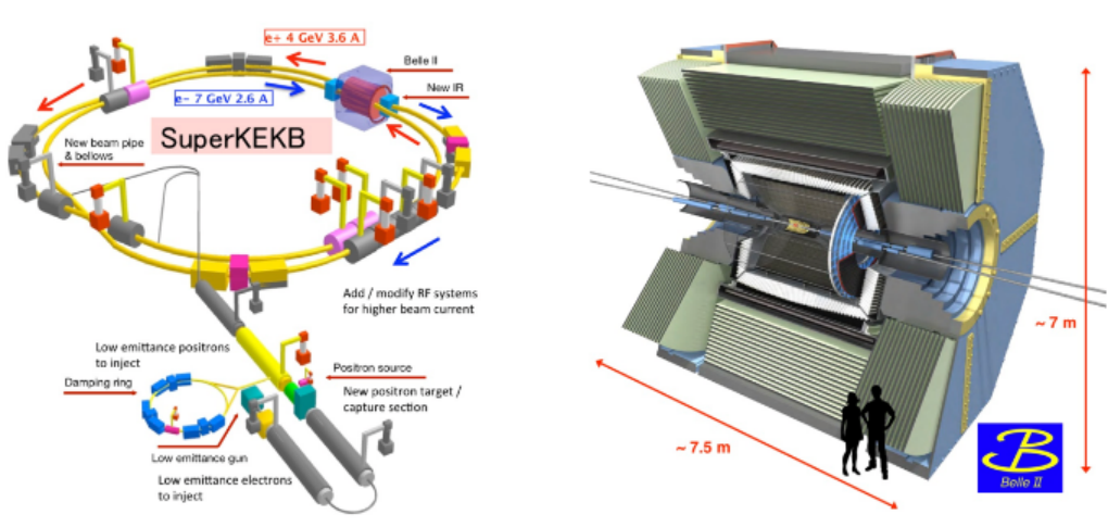 Belle II实验加速器(左)探测器(右)示意图