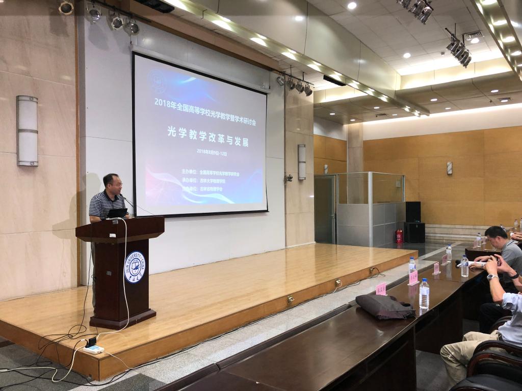 2018年8月10-12日由全国高等学校光学教学研究会主办,suncitygroup太阳集团承办,吉林省物理学会协办的2018年全国高等学校光学教学暨学术研讨会在吉林大学东荣会议中心二楼报告厅开幕。来自全国70余所高校、出版社及光学教学仪器开发公司的110余名代表参加了本次会议。