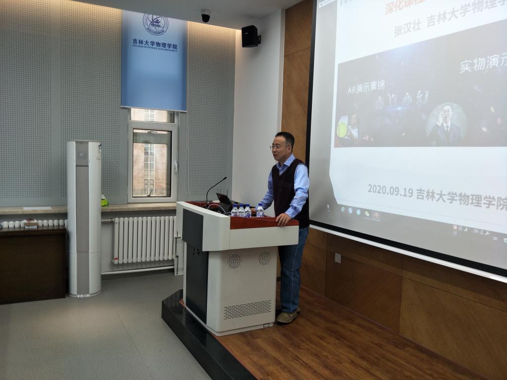 为了进一步激发全院教师的教学积极性,改善教学效果,促进教学理念交流,提升课堂思政水平,suncitygroup太阳集团于2020年9月18日在物理楼333举办了本学期教学发展论坛系列活动之一——“深化课程建设·践行育人使命”主题教学研讨会。本学期教学发展论坛包括课程思政教学研讨会、理论课研讨会、实验课研讨会、课程建设研讨会、师生互动促进会等五大板块。本次教学研讨会由国家级领军人才-教学名师张汉壮担任主讲人,学院党委书记孟文卓、副院长王海军以及有本科课程任务的教师出席会议。