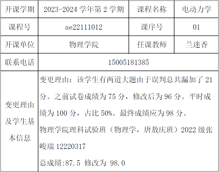 根据《关于进一步明确本科生课程考核等有关问题的通知》(校教字[2018]47号)文件有关精神,现对一下课程成绩更正进行公示:
