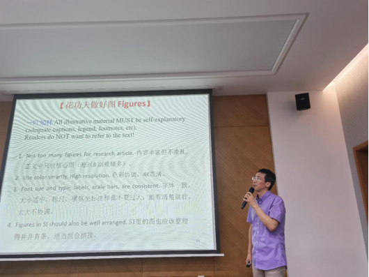 紧接着,范红金教授给出了作图方面的详细建议。一是正文图片要信息丰富,图质高清。图片内容丰富但不要重复堆砌,尽量只放核心图片,图片要色彩协调,4K高清;二是正文图片要避免拥挤,留有空白。图内注意字体一致,大小适中,abcd等标识及横纵坐标注释不宜过大;三是图注力求清晰简洁,如果很长,可以加一个小标题;四是避免在图注里大量讨论。Supporting information的图注里适当加一些讨论尚可。