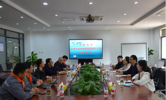 2024年3月9日上午,suncitygroup太阳集团党委书记孟文卓、副院长孙成林、副院长杨景以及院校友办公室工作人员周淼等一行4人到安徽大地熊新材料股份有限公司调研。大地熊执行总经理、稀土永磁材料国家重点实验室主任、86级校友衣晓飞,常务副总经理、93级校友陈静武,副总经理董学春,副总工程师、国家重点实验室副主任刘友好,技术中心副主任、86级校友黄秀莲,技术中心主任助理查善顺等接待了孟文卓一行。