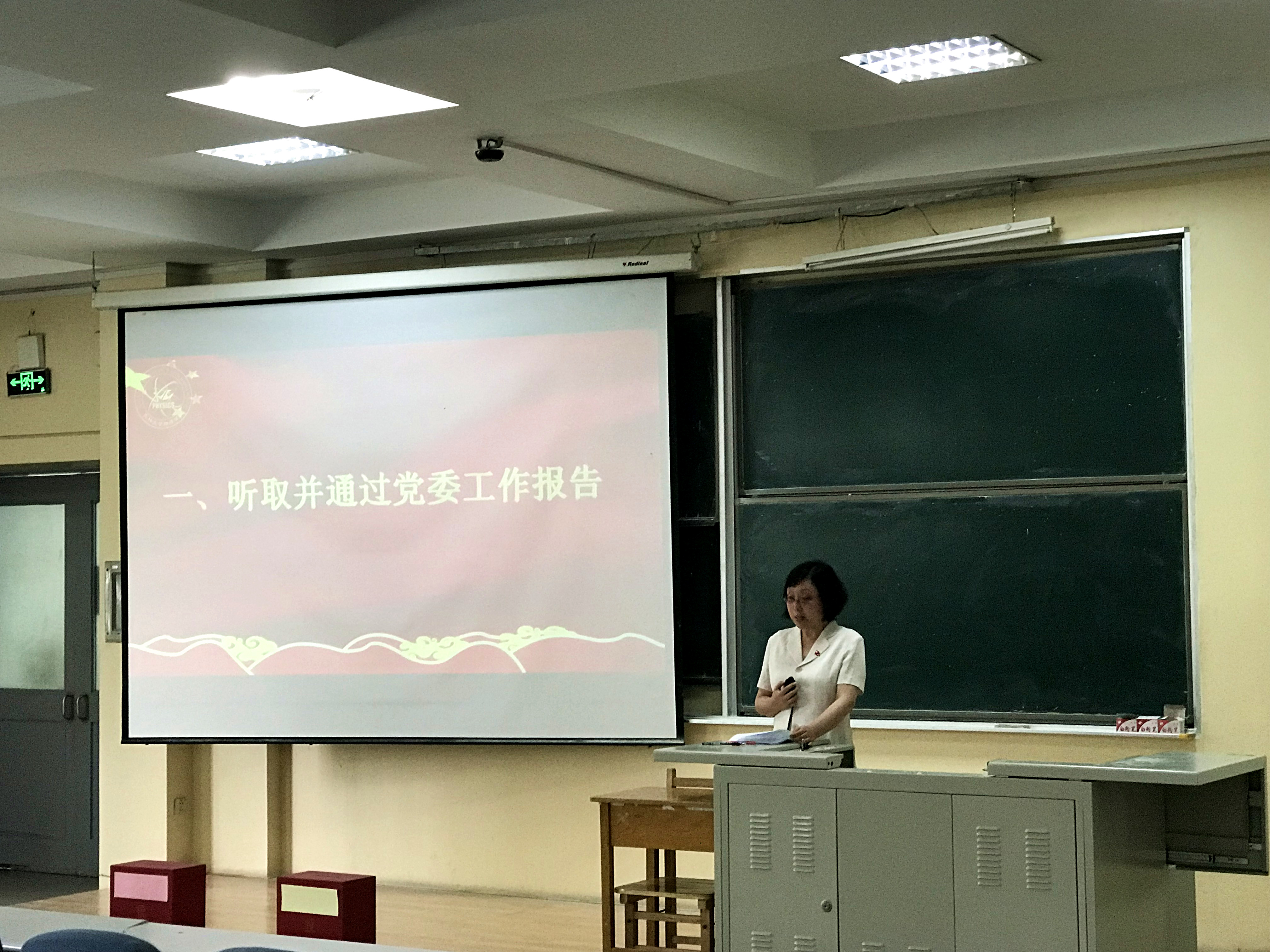 根据学校党委《关于开展院级党组织委员会和基层纪委换届选举工作的通知》有关规定,经学校党委批准,2018年6月13日中午12:00,中国共产党suncitygroup太阳集团委员会第五次党员代表大会在逸夫教学楼第二阶梯教室隆重召开。学院全体教工党员及学生党员代表参加了本次大会,会议由学院党委副书记兼副院长杨讴菡主持。