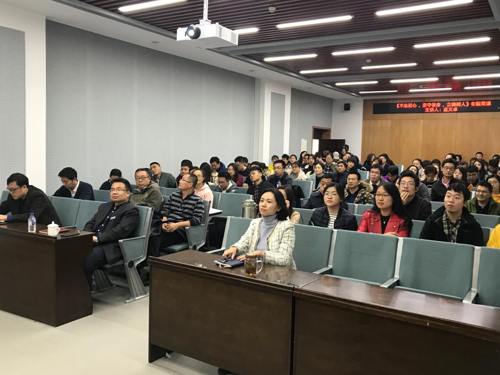 根据学校党委“不忘初心、牢记使命”主题教育总体部署,10月31日下午在物理楼333报告厅,学院党委书记孟文卓以“不忘初心、坚守使命、立德树人”为主题,为学院全体师生党员讲授了一堂生动形象的专题党课。校第八指导组副组长鲍锋同志和suncitygroup太阳集团在校师生党员参加了活动。会议由学院党委副书记兼副院长杨讴菡主持。