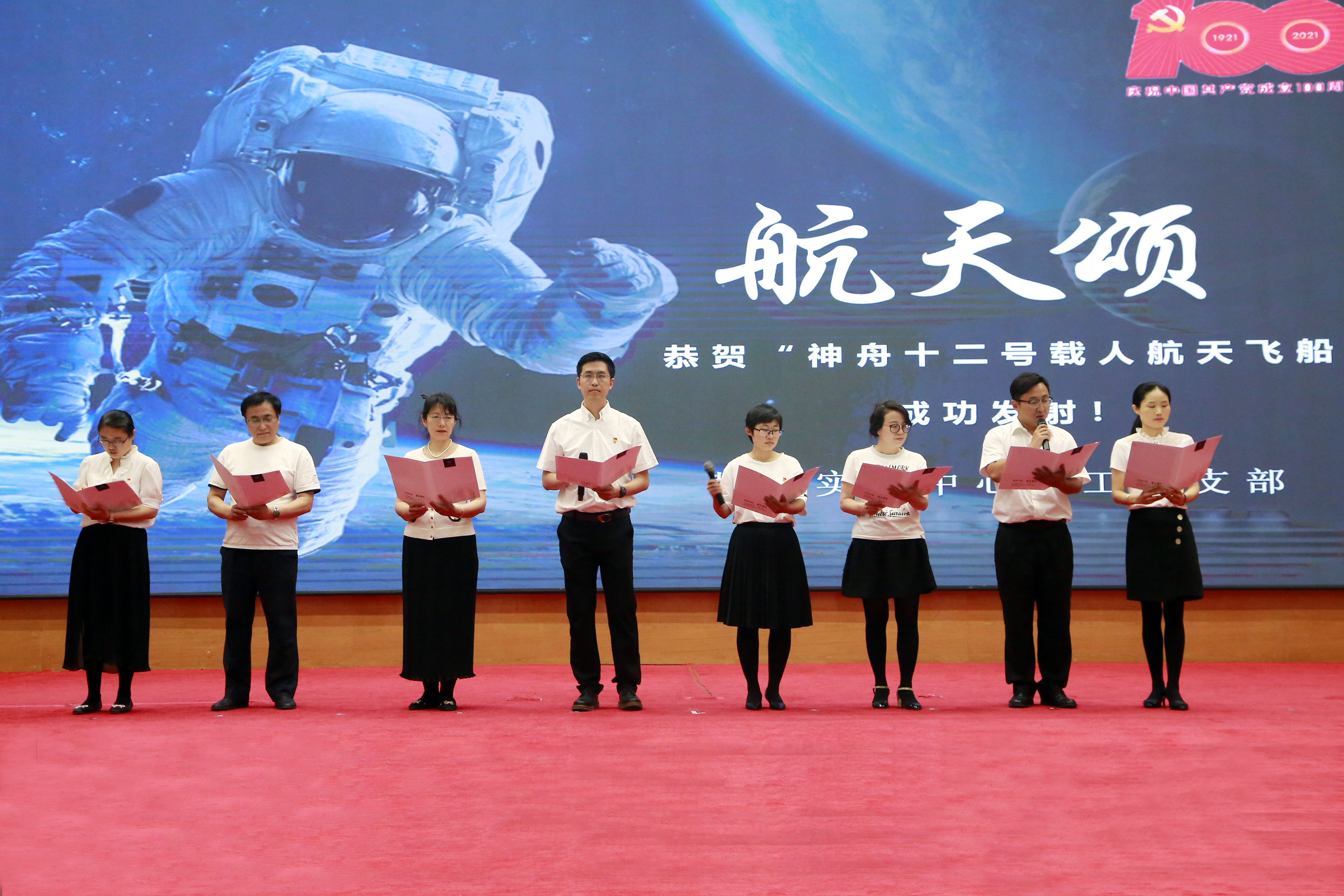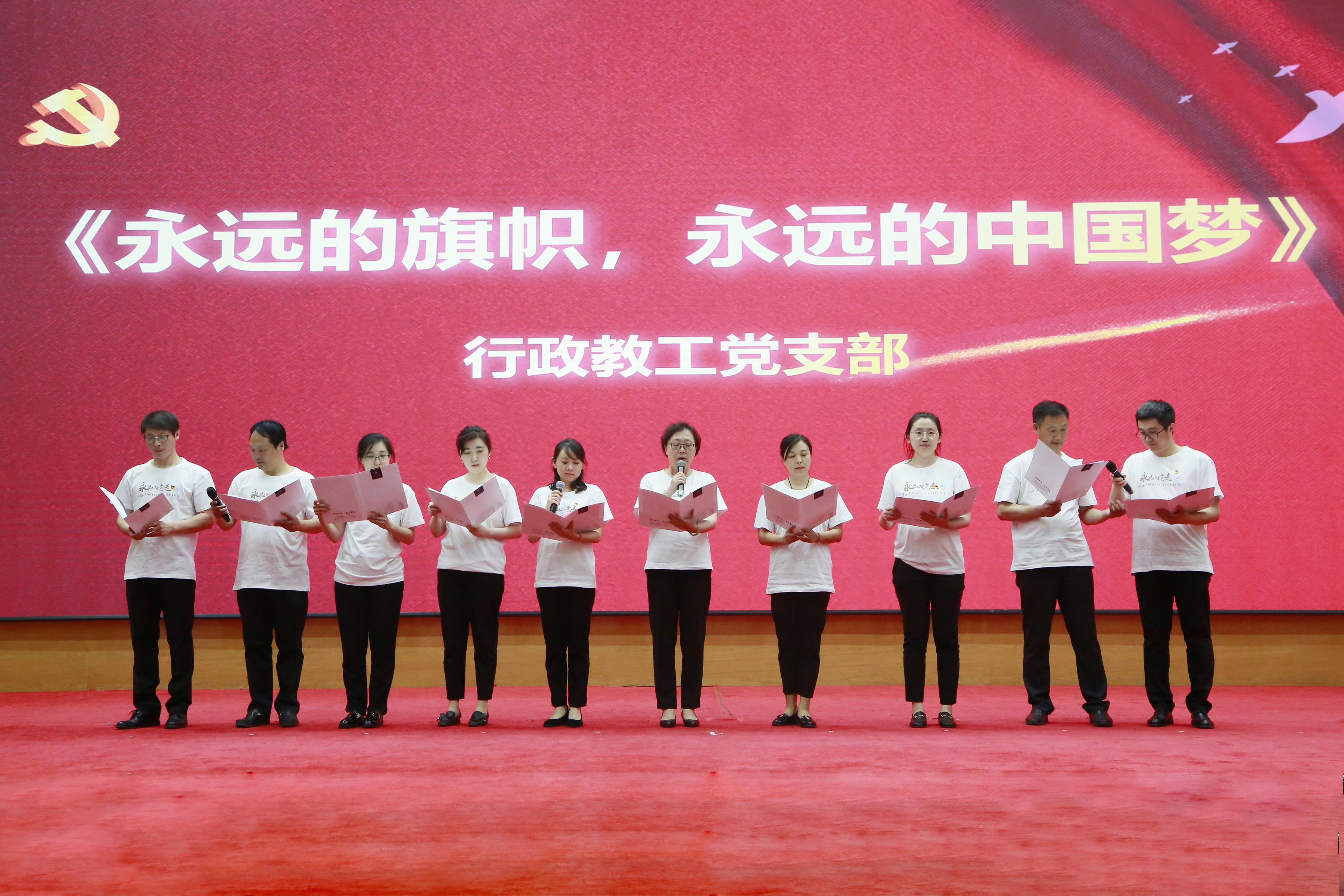 诗歌朗诵会上,师生党员们或以慷慨激昂的声音演绎峥嵘岁月,或以低沉深重的情感回忆百年沧桑。党政班子成员朗诵的《信念永恒》让大家感怀伟人的气概,《七月》让每个人再次回味百年历程,《航天颂》紧密结合神州十二号飞船发射成功时事,又一次激发了大家的爱国情怀……。在优美动听的音乐的陪衬下,随着音调的起伏,一首首诗歌如清泉、如暖流般在耳边缓缓流淌,流入每个人的心田。