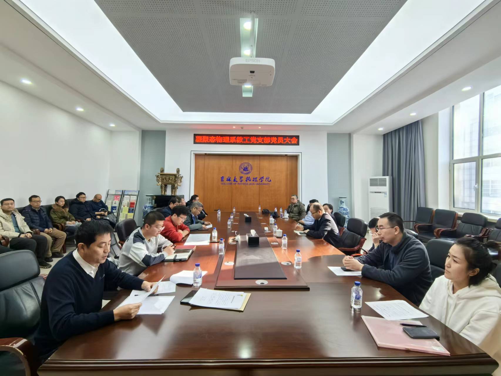 为持续推进主题教育与一流学科发展紧密融合,深入基层一线,认真听取师生意见,切实加强与“双高”教师的紧密联系,不断提升在“双高”教师中发展党员工作质量,11月24日,校党委常委、副校长马琰铭参加suncitygroup太阳集团凝聚态物理系教工党支部党员大会及主题党日活动,与大家共同深入学习习近平总书记在全国高校思想政治工作会议讲话精神,他号召教师党员要带头落实立德树人根本任务,坚持“三全育人”鲜明导向,切实把主题教育成果融入工作实践、取得良好成效。