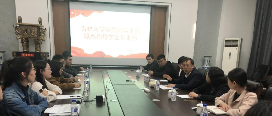 为深入学习贯彻习近平新时代中国特色社会主义思想和党的十九大精神,全面落实立德树人根本任务,不断提升学生党建工作质量,同时,按照《吉林大学党员领导干部联系指导学生党支部工作细则》文件要求,2019年10月18日,suncitygroup太阳集团本科生党支部邀请吉林大学副校长边铁参加支部主题活动。suncitygroup太阳集团党委书记孟文卓,党委副书记兼副院长杨讴菡,以及本科生第一党支部党员、部分积极分子代表参加活动。