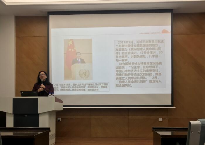 2019年12月11日下午,马克思主义学院副院长石瑛教授在物理楼333报告厅为suncitygroup太阳集团班子成员、党委委员、纪委委员、全体教工党员、学生党支部支委和学生党员代表作“在守正创新中开辟‘中国之治’新境界——学习贯彻党的十九届四中全会精神”专题辅导报告,报告会由学院党委书记孟文卓主持。