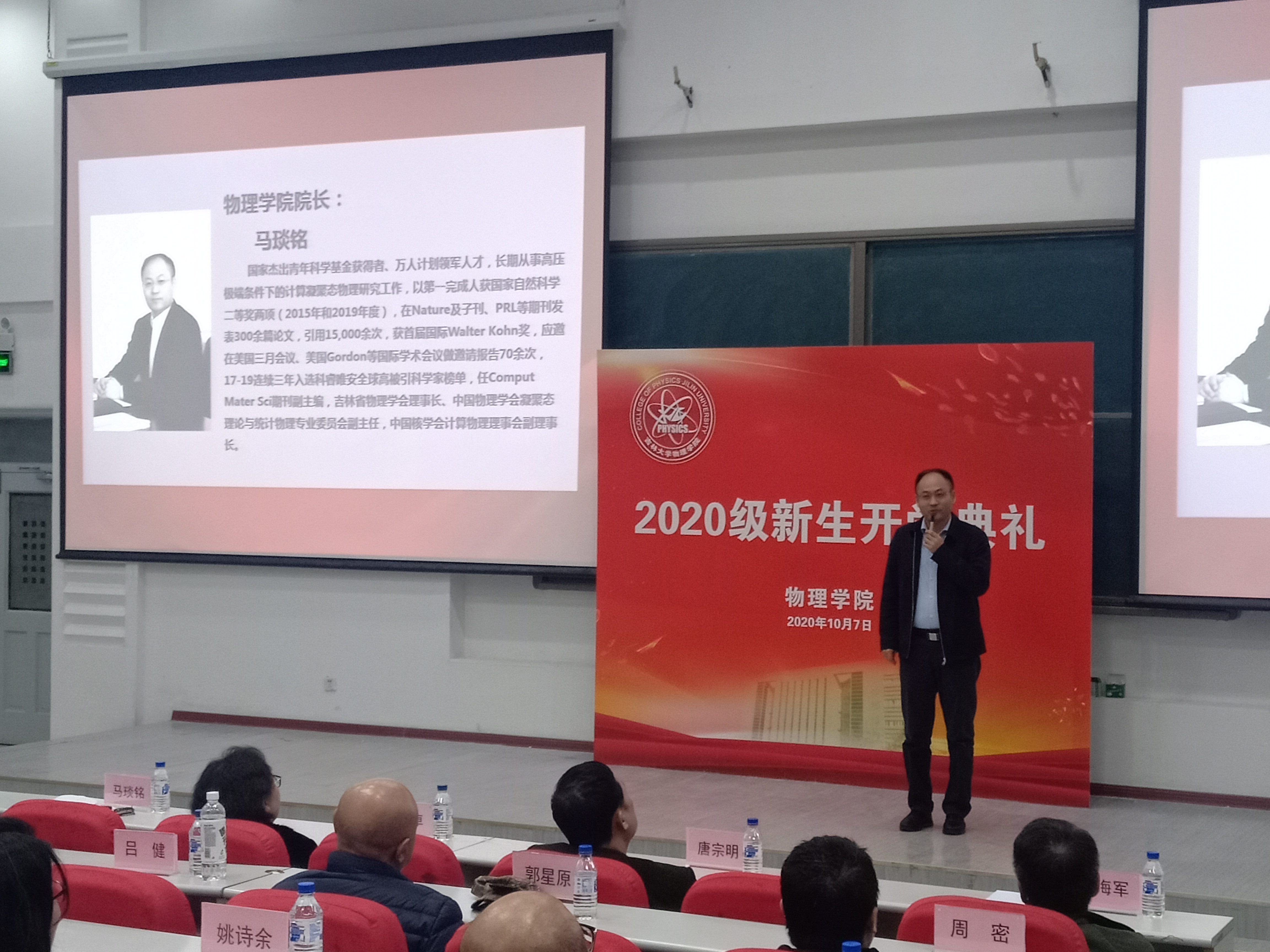 马琰铭院长讲述了吉林大学和suncitygroup太阳集团的发展历史。近七十年,一代代吉大物理人淡泊名利攻克科研难题,青蓝相继,薪火相传,培育物理英才。重点解读了suncitygroup太阳集团在艰苦卓绝的发展历程中凝练的精神内核,他要求全体师生继承并发扬“坚韧不拔、追求卓越”的吉大物理精神,使其成为不畏艰难、顽强拼搏,终生学习、不断进步的座右铭,争做又红又专的新时代吉大物理人。他希望青年学生要牢记家国情怀,始终怀着一颗感恩的心,处处传递正能量,珍惜学习机会。