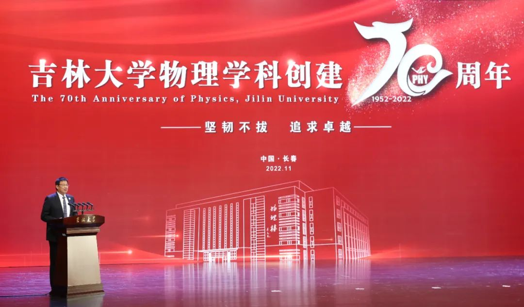 壮阔70年,奋进新时代。11月12日上午,庆祝吉林大学物理学科创建70周年大会在吉林大学鼎新大讲堂举行。回望70载来时路,吉大物理的历史,就是在坚韧不拔中锤炼、在追求卓越中成长的光荣史;也是一部革故鼎新、特色发展的奋斗史。大会回顾了70年来吉大物理从无到有、从小到大、从弱到强的奋斗历程,总结在肇基、建设、改革、发展中形成的历史经验,展望在新时代征程上建设中国特色、世界一流学科的光明前景。