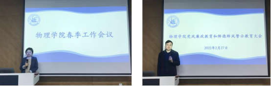 书记孟文卓对会议作了总结发言。孟文卓表示,2022年是非常重要的一年,即将迎来二十大召开,“双一流”建设进入第二轮,“十四五”规划持续推进,七十周年院庆如约而至。面对意义非凡的一年,孟文卓向全院教职工提出了三点要求。一是要全员参与。2022年是物理学科创建七十年大庆之年,每一位教职工都是院庆的主人,全员参与必不可少。二是要全员担当。推动整个学科发展是学院每个人的责任,希望全体教职工在教学、科研、管理等方面发挥积极主动性。三是要发挥学院班子成员和党员同志的带动、带领、带头作用,做好师德师风和廉政教育,加强制度建设和制度落实问题。最后,孟文卓希望学院教职员工以院庆为契机,发扬优良传统,凝聚发展力量,使学院建设再上台阶!
