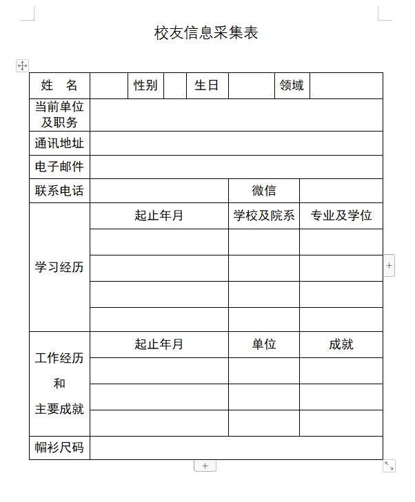 校友注册登记表