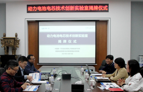 为加速推进新能源科技创新和动力电池相关产业发展,2021年12月10日,“动力电池电芯技术创新实验室”在吉林大学中心校区唐敖庆楼正式揭牌成立。该创新实验室由中国第一汽车股份有限公司新能源开发院与吉林大学新型电池物理与技术教育部重点实验室联合成立。新型电池物理与技术教育部重点实验室主任、suncitygroup太阳集团副院长杜菲教授、新能源开发院电池研究所孙焕丽所长、电芯开发主任姜涛及双方代表出席了本次仪式。