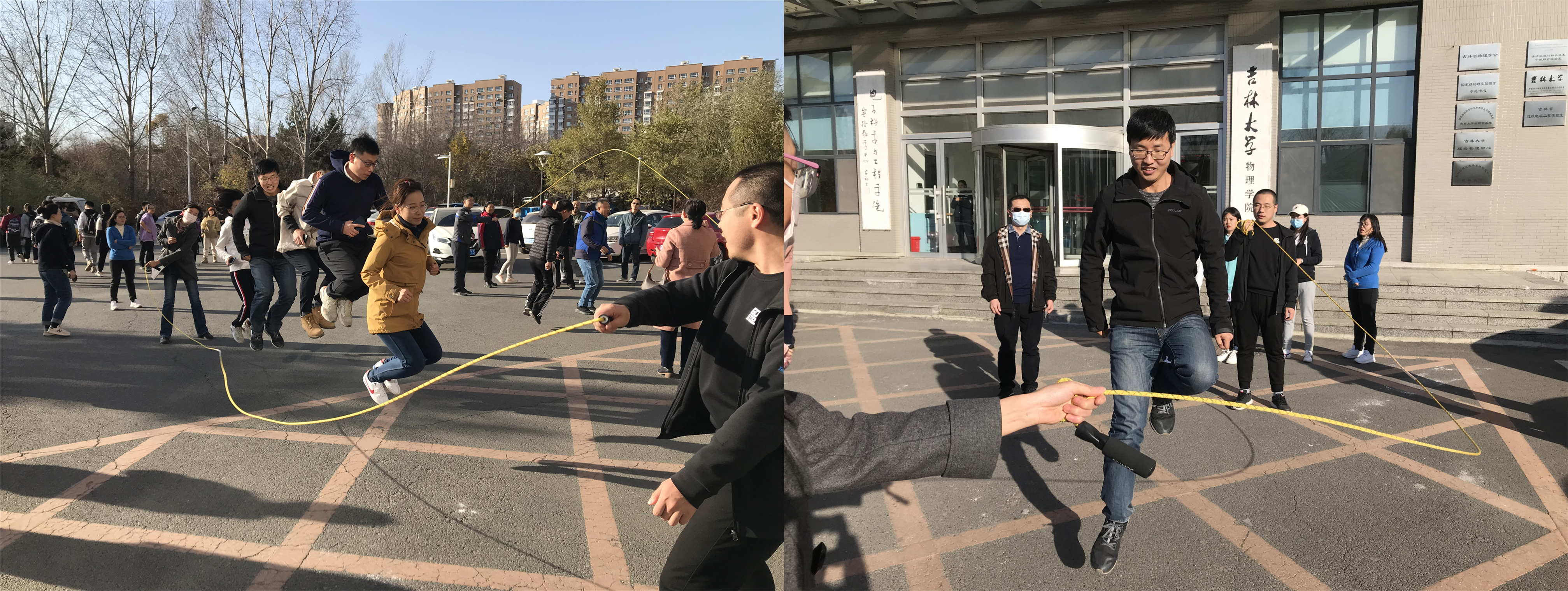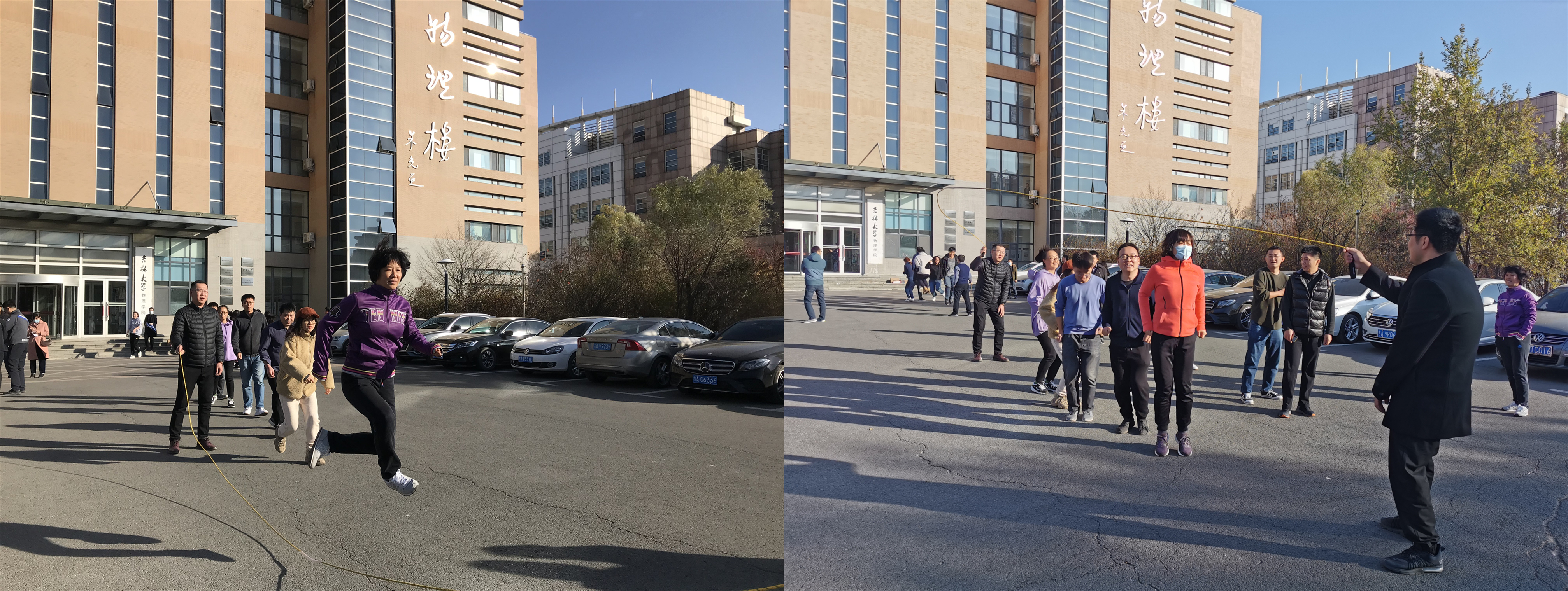 为丰富疫情期间我院教职工体育文化生活,增强学院团队协作精神和凝聚力,2021年10月27日下午,suncitygroup太阳集团工会、妇委会举办了教职工跳长绳比赛活动,活动在物理楼前举行。