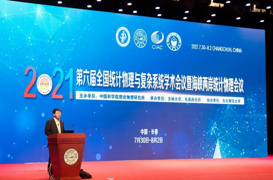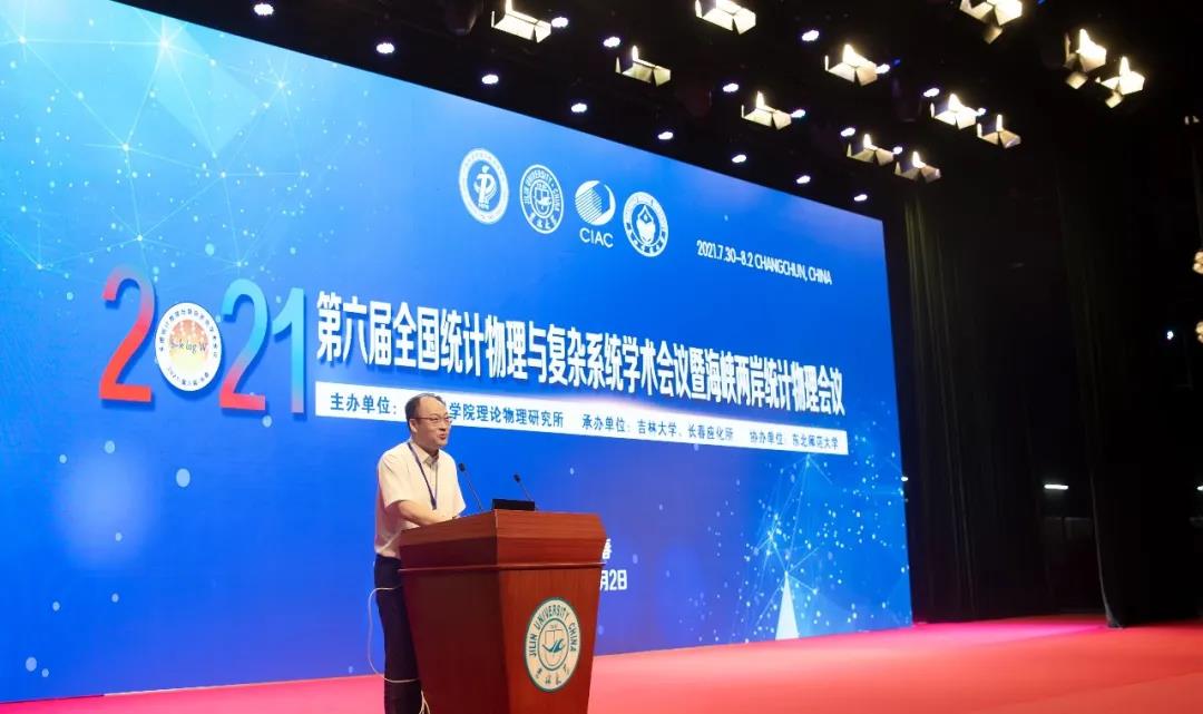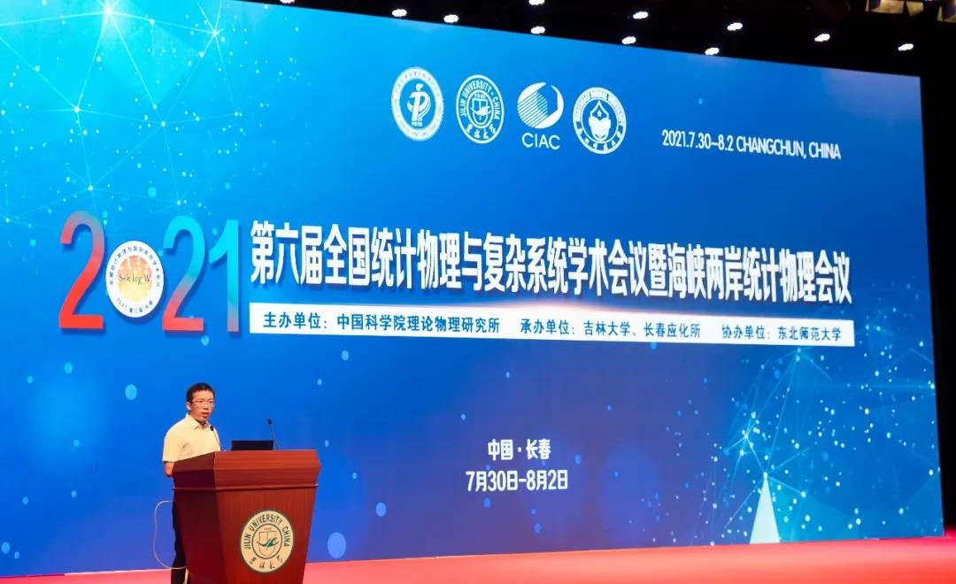 7月31日,第六届全国统计物理与复杂系统学术会议暨海峡两岸统计物理会议开幕式在吉林大学中心校区鼎新大讲堂举行。来自中国科学院、中国工程物理研究院、北京大学、清华大学、北京师范大学、复旦大学、上海交通大学、浙江大学、中国科学技术大学、厦门大学、武汉大学、四川大学、中山大学等150多家高校及科研机构的500余名代表出席了开幕式,包括香港、台湾在内的国内10多个地区200余人线上参加了开幕式。