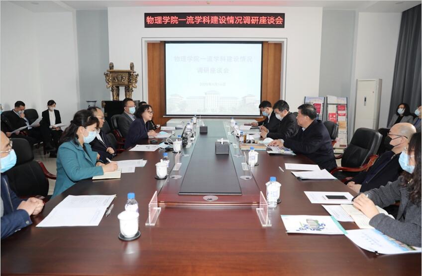 在物理楼会议室,suncitygroup太阳集团院长马琰铭围绕学院概况、人才培养、师资队伍、科学研究等方面及近期取得的成绩进行汇报。与会人员从物理学科的发展、面临的困难和存在的挑战等方面进行发言。
