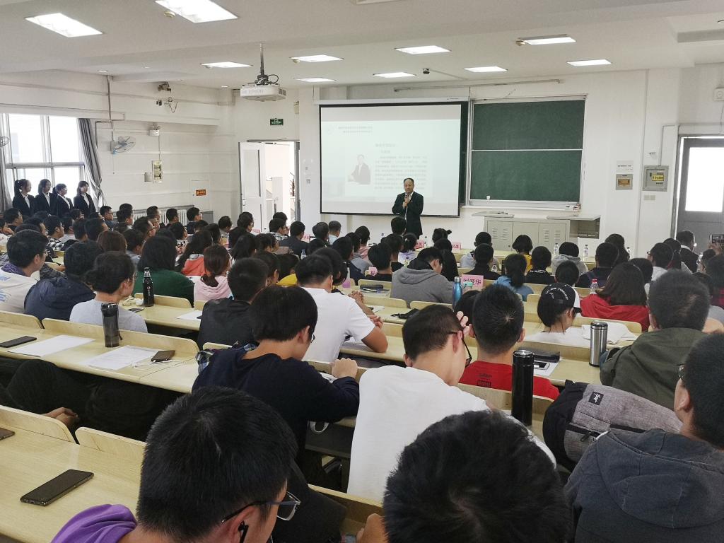 随后,本科生学术导师代表宋维民老师进行发言,向同学们阐述了自己的学习经历,同时鼓励同学们抓住此次双选会的机会,选择自己喜欢的导师和方向。宋维民老师表示作为学术导师不仅要在学术方面对学生做指导,也要做学生事业发展上的向导,还要关注学生的生活,做他们的心灵辅导。对参加导师双选会的学生提出对待学习生活要负责任、勤沟通、夯基础的三点要求。学生代表2018级本科生李旭同学进行了发言,他代表在场所有学生感谢学院的培养,表示本科生学术导师制度为同学们提供了提前进行课题学习与科研训练的机会,并号召同学们要学习老师们攻坚克难的品质和求真务实的精神。