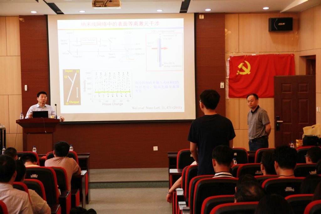 作为单分子表面增强光谱和等离激元光子学领域的开创者之一,徐红星院士首先向大家介绍了等离激元光子学和纳米光学领域的最新进展,重点介绍了纳米间隙等离激元耦合效应的发现过程,及其在单分子表面增强拉曼光谱领域中的应用;此外还系统介绍了基于银纳米线的超灵敏传感器的制备过程和工作原理。特别是,基于纳米间隙的表面增强拉曼光谱在检测传染性疾病、食品安全、环境检测等领域的应用,引起了师生浓厚的兴趣。