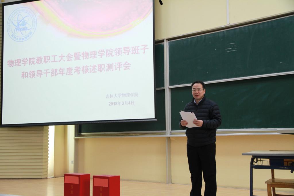 首先,马琰铭院长代表党政领导班子作工作总结,他围绕“学院坚持党的领导,以思想和觉悟提升为工作核心”、“学院坚持集体领导,民主集中的科学决策机制”、“学院以一流学科建设为主线,全面统筹推进各项工作”,从学科建设、师资队伍、人才培养、科学研究、国际交流等方面总结了学院2017年度工作。马院长指出在总结取得成绩的同时,全院教职工也要正确认识到学院在发展过程中面临的良好机遇和巨大挑战。马琰铭院长代表学院班子感谢全体教职工在过去的一年里所付出的辛勤努力,希望全院师生继续支持学院的整体工作,携手奋进,共同推动suncitygroup太阳集团的工作再上新台阶。最后,他部署了2018年学院工作要点。