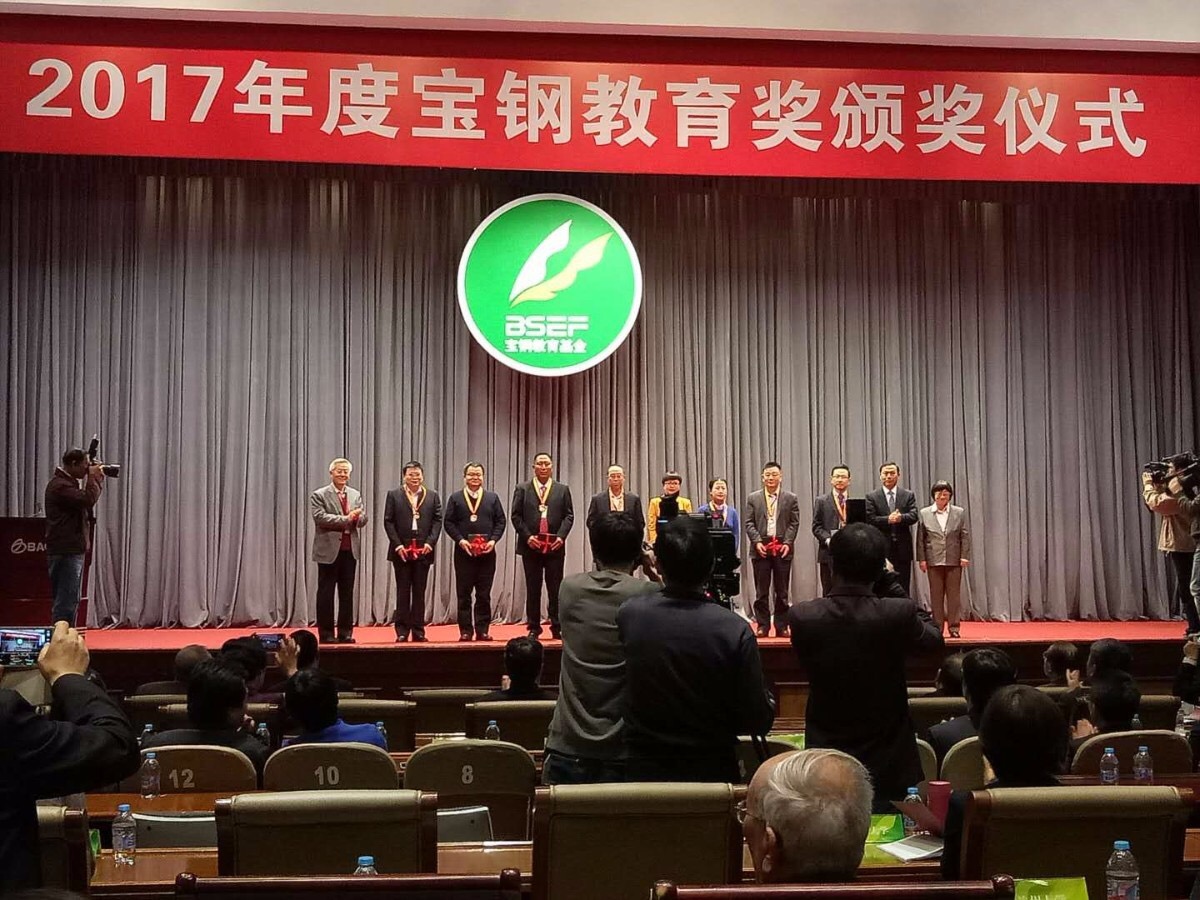 (附:宝钢教育基金始于1990年设立的宝钢奖学金。基金所设立的“宝钢教育奖”是宝钢独家出资设立、政府支持指导、专家咨询策划、高校积极参与的全国最具知名度的教育奖项之一。参评的70余所著名高校中,仅有6位老师荣获2017年度“宝钢优秀教师特等奖”。)