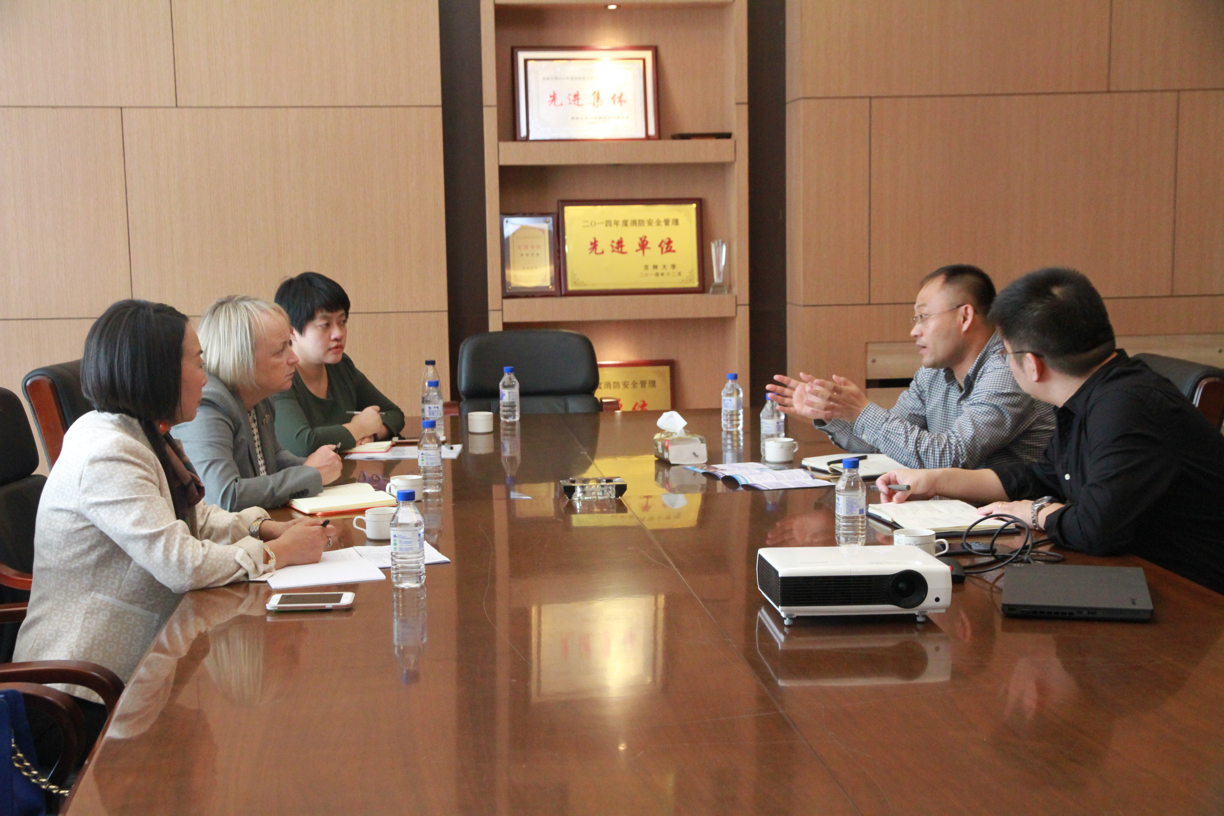 2017年9月1日上午,suncitygroup太阳集团马琰铭院长、杜菲副院长在国际合作与交流处白茵老师的陪同下,与美国肯塔基大学副教务长Sue Roberts、肯塔基大学孔子学院院长修华静进行会面。