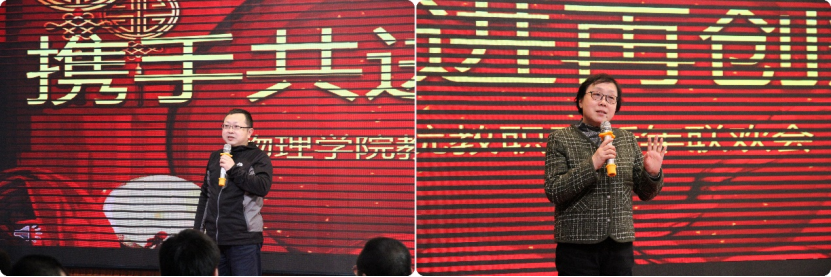院长邹勃、书记孟文卓先后发表新年贺词,他们对2023年学院在学科建设、人才培养、科学研究、师资培养、学术交流、国际合作各方面发展取得的辉煌成绩表示祝贺,对全体教职工的辛勤工作和努力付出表示衷心感谢,并向大家致以亲切的新年祝福,祝愿学院全体教职员工新年快乐,身体健康,工作顺利,生活美满,万事如意。