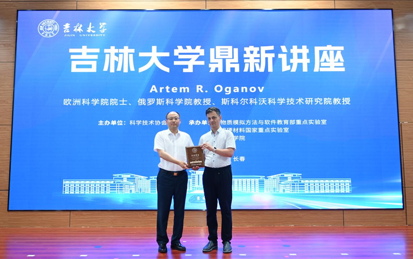 中国科学院院士、吉林大学副校长马琰铭主持讲座,并为Artem R. Oganov教授颁发“鼎新讲座纪念牌”。在讲座嘉宾介绍中,马琰铭高度赞誉了Oganov在晶体结构预测和计算新材料领域所做出的杰出贡献,并表达了对本次讲座能够启发师生科研新思路的期待。