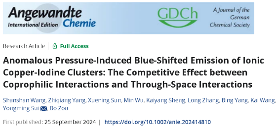 Angew. | 邹勃教授团队在高压调制离子型铜碘簇光物理性质方面取得进展
