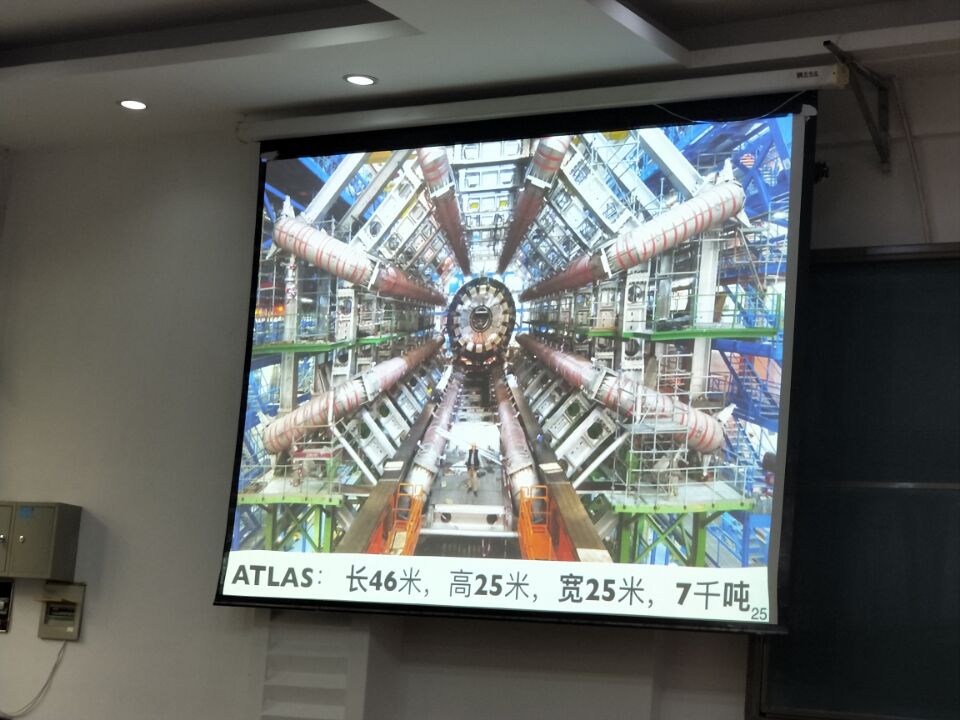 报告之初,曹庆宏教授为大学生介绍了一个新的领域——粒子物理。在粒子物理的阐述中,不仅有更深层次,更高能量的粒子间相互作用的探测,还有简单优雅的粒子物理标准模型的演示。更不可思议的是,粒子物理以微观世界语言即自热单位制的方式,将质量、长度、时间、温度及能量建立起联系,让我们深刻感受到理论物理的魅力所在。