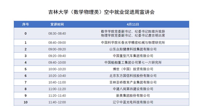 为深入贯彻党中央、国务院关于高校毕业生就业工作的决策部署,落实姜书记和张校长的讲话精神,积极应对疫情对学生求职就业造成的影响,2022年4月11日,在学校就业中心指导下,suncitygroup太阳集团与数学学院联合召开吉林大学分行业空中就业宣讲活动(数学物理类)。本次空中宣讲由参加线上双选的23家代表性单位参与,其余单位宣传材料实时推送,累计观看人数突破1000人,充分保障我院毕业生高质量充分就业。