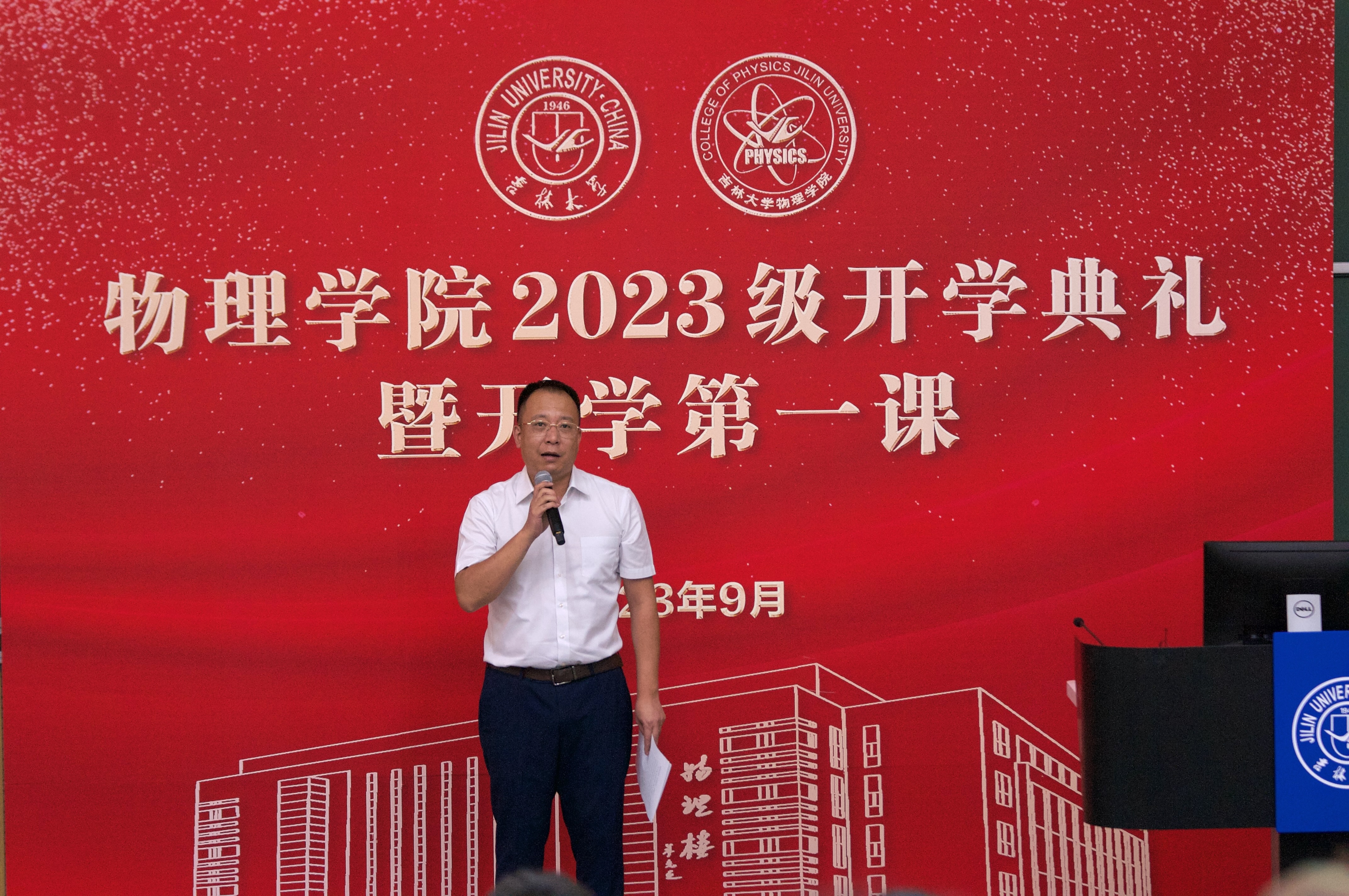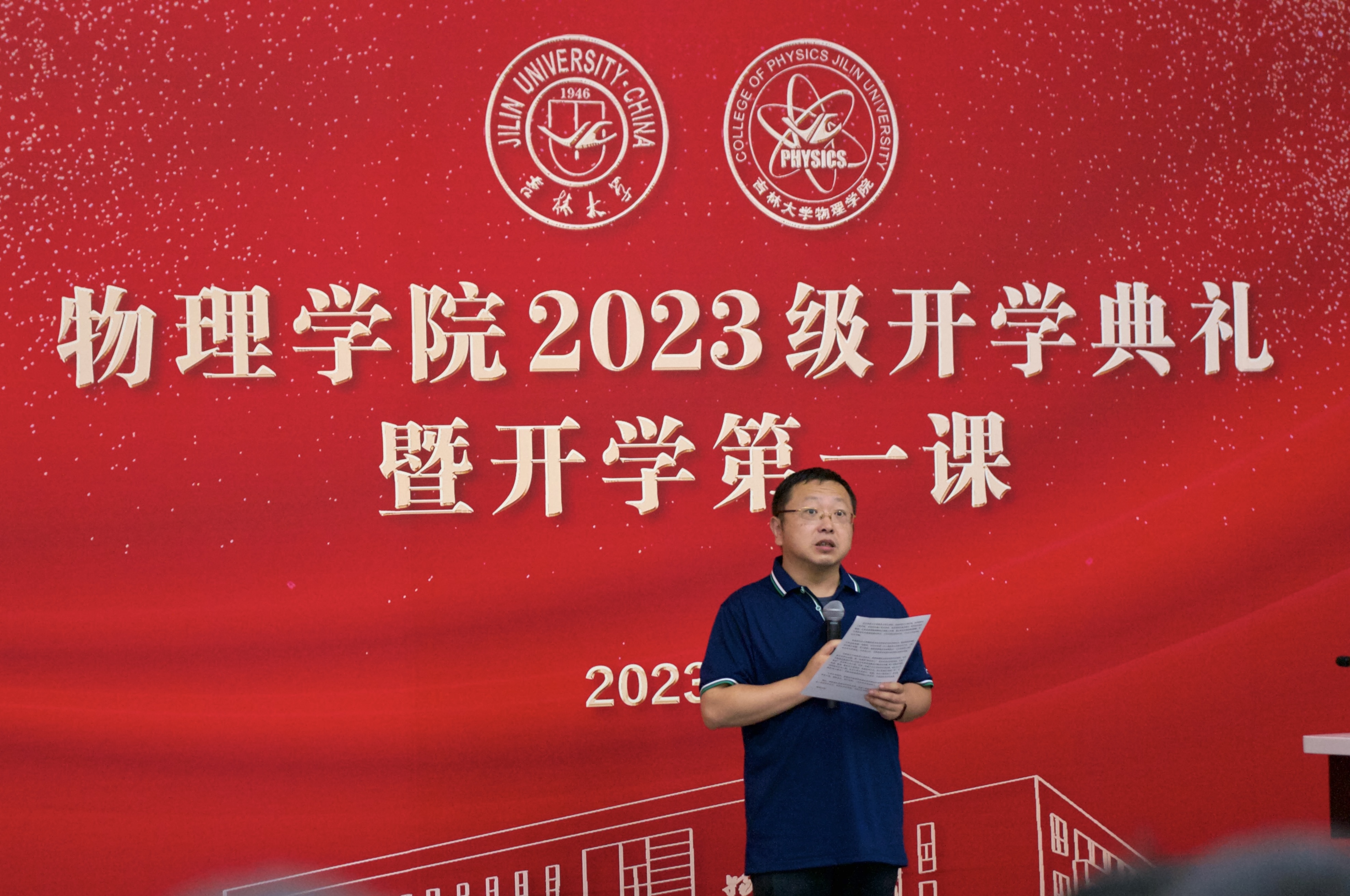 suncitygroup太阳集团院长邹勃教授致辞。邹院长首先为大家介绍了吉林大学及suncitygroup太阳集团的发展历史与辉煌成就,进一步增强了同学们的自豪感。邹院长说:“要敢于质疑,勇于探索。”这是大学生急需的品质与能力。邹院长提出了科学研究的“三重境界”:通过观察和发现现象来获取知识;大胆提出假设与猜想并给予验证;建立理论体系并进行创新,最后,邹院长表达了对同学们的殷切期盼并希望同学们能做好远期目标的规划和近期目标的计划,修身立德、锤炼意志,做对国家、人民和社会有用的人。