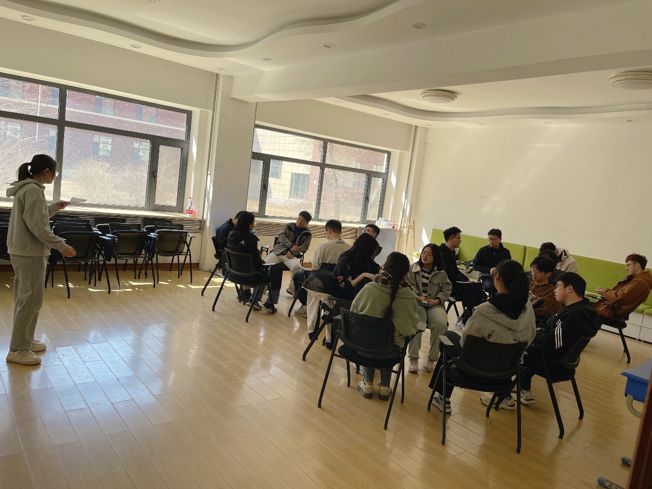 活动由四部分组成,分别为自我介绍、“情绪大头贴”、“故事串演”以及会议总结。各个环节层层递进,让积极的情绪如流水一般冲刷过每位学生的心灵,让参与者逐渐打开心扉,直视内心,表达自我。在自我介绍环节中,同学们热情洋溢地介绍了自己,在交流中逐渐加深了对彼此之间的了解。随后的“情绪大头贴”“故事串演”环节中,组织者将情绪卡背面向上,让所有参与者随机抽取一张卡片并保密,以人体雕像或者语言描述的形式先后表演出卡面上的情绪内容,由组内其他成员猜,待组内所有的情绪卡全部猜出后,将组内的情绪卡内容串演成一个小故事,同学们充分发挥自己的创造力和表演才能,活动中笑声不断。最后环节,同学们逐渐打开心扉,有的同学主动说出了自己的烦恼和困惑,大家一起出谋划策提供多元视角帮助解决,最终“心灵沟通”主题班会活动在同学们心与心的碰撞中圆满落幕。
