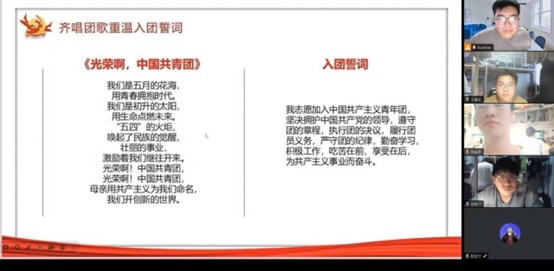 本次团日活动以各班级团支部为单位同时进行,以“砥砺前行,不忘初心”为活动主题,在活动开始时,全体团员一起重温入团誓词,回顾自己加入团队时的初心和信念,进一步明确自己的责任和使命。宣誓完毕,团员们纷纷表示,一定牢记入团宣言,时刻以一个团员的标准来严格要求自己。重温入团誓词,仿佛又让我们回到了入团时那令人激动而又难忘的时刻,重温当年的决心和信念,让我们热血沸腾,充满理想。这铮铮誓词激励我们在实践中锤炼本领,做有理想、有本领、有担当的新青年。我们更要勤奋学习,积极工作,践行团员使命,用更高要求约束自己,去共担时代重任、共赴崭新前程。