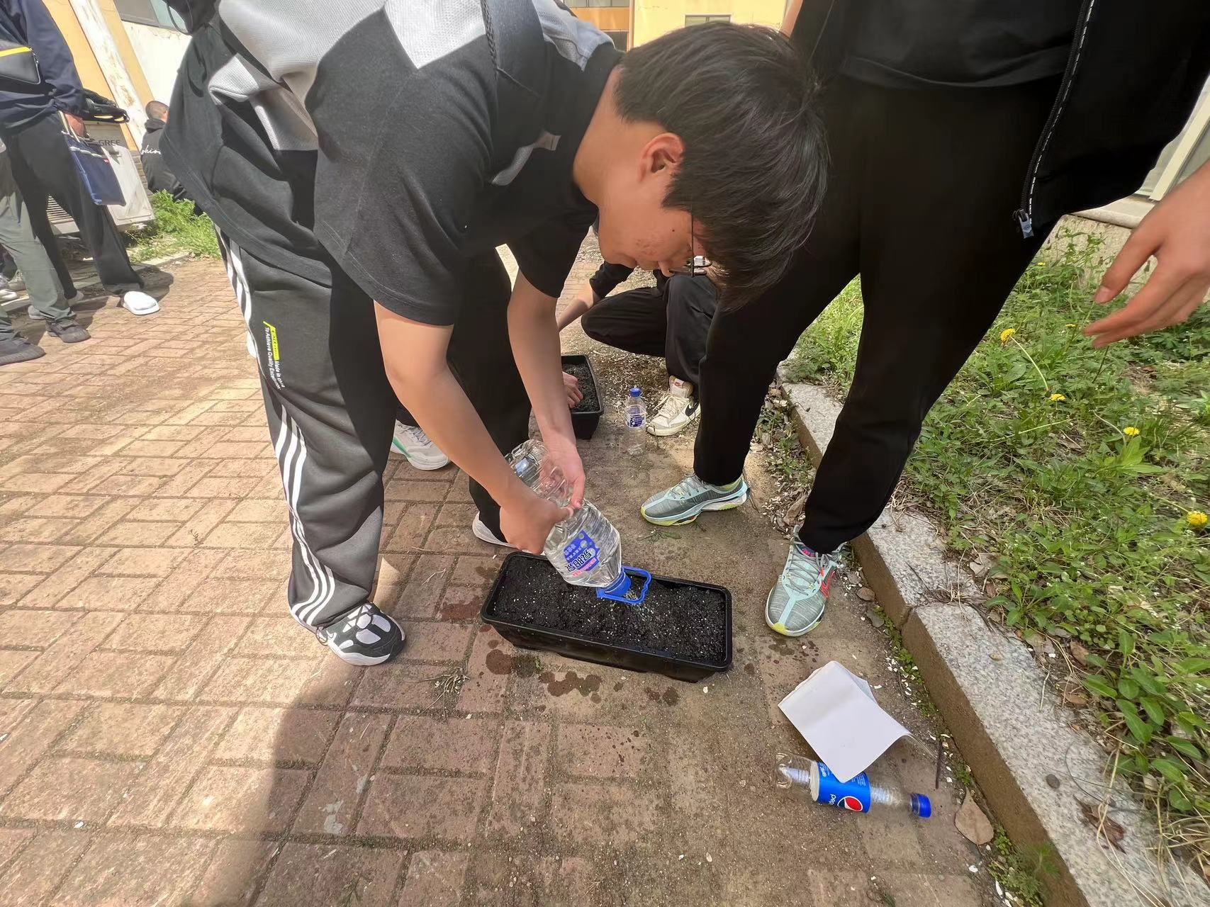 5月8日中午,学院组织开展“认领一块地”劳动教育实践活动,在学院大力支持下在物理楼规定区域内开展蔬菜种植活动。活动开始前首先以班级为单位划分小组,每个小组认领一个育苗盆,在学院老师的带领下进入规定区域进行蔬菜种植。到达指定区域后,学生们首先对区域内的杂物和杂草进行清扫整理,之后进入播种环节,学生首先在辅导员老师处领取每组的种子和肥料,之后将种子播撒在每组的育苗盆内,浇水施肥,在育苗盆外侧张贴分组标签,最后同学们整理好劳动工具,将整个劳动过程中产生的垃圾扔到指定位置,有序离开划定区域。