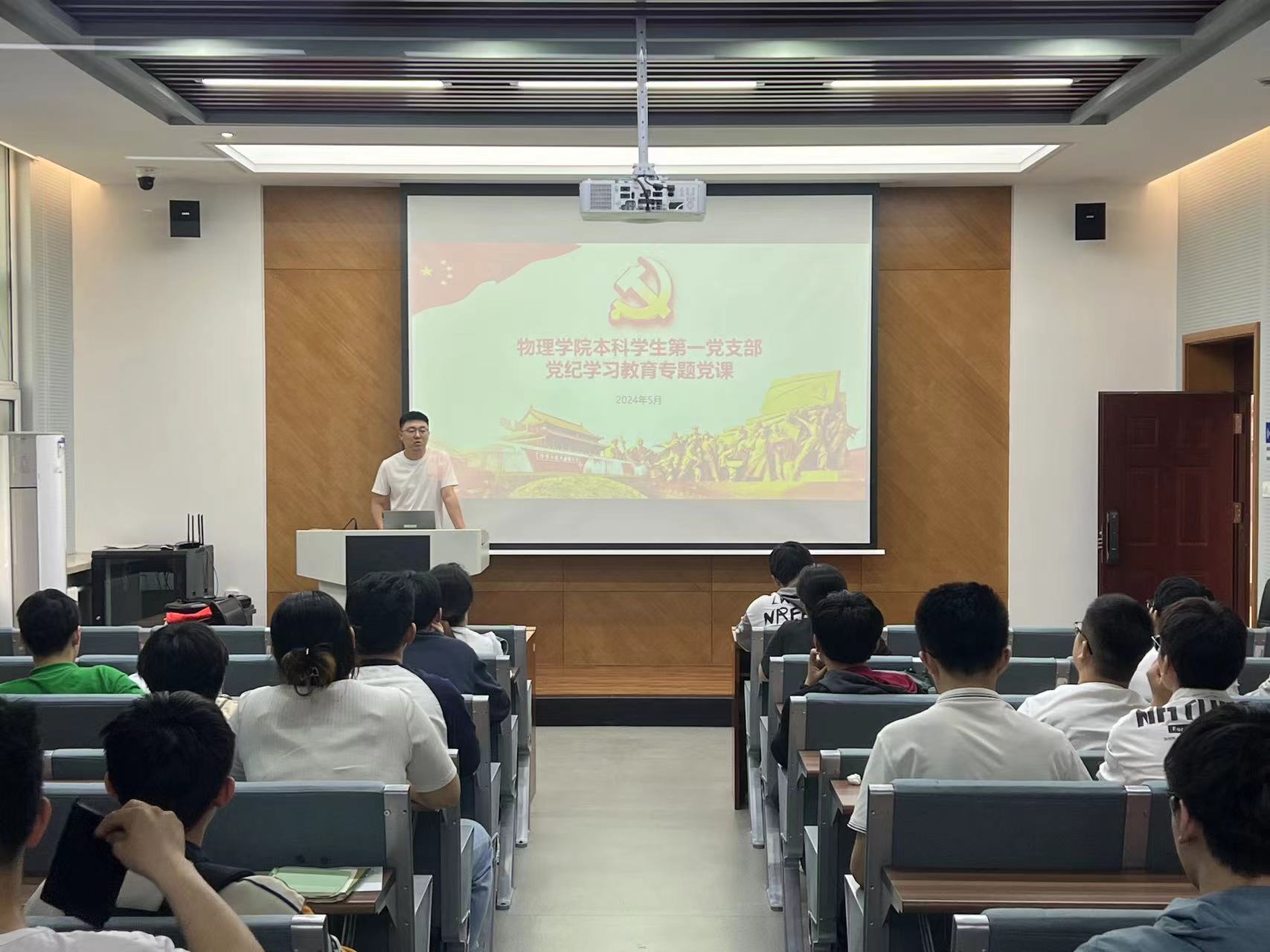 为深入学习贯彻习近平总书记的重要讲话和重要指示精神,落实《关于在全党开展党纪学习教育的通知》要求,深刻领悟“两个确立”的决定性意义,坚决做到“两个维护”,切实把思想和行动统一到党中央决策部署上来,把开展党纪学习教育作为重要政治任务,推动党纪学习教育走深走实。5月23日中午,suncitygroup太阳集团本科学生第一、第二党支部在物理楼333召开党纪学习教育专题党课。suncitygroup太阳集团2024年第一期本科生党员发展对象参加此次党课培训。