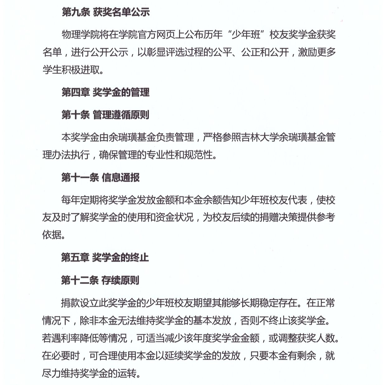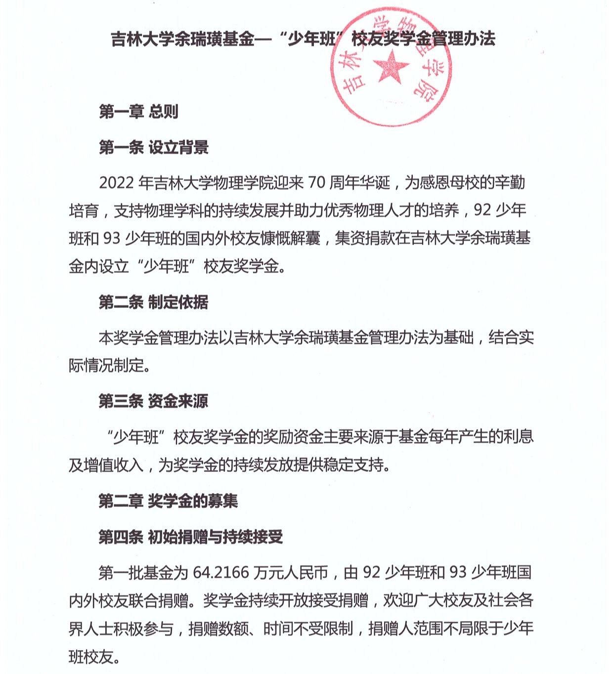 吉林大学余瑞璜基金——“少年班”校友奖学金管理办法